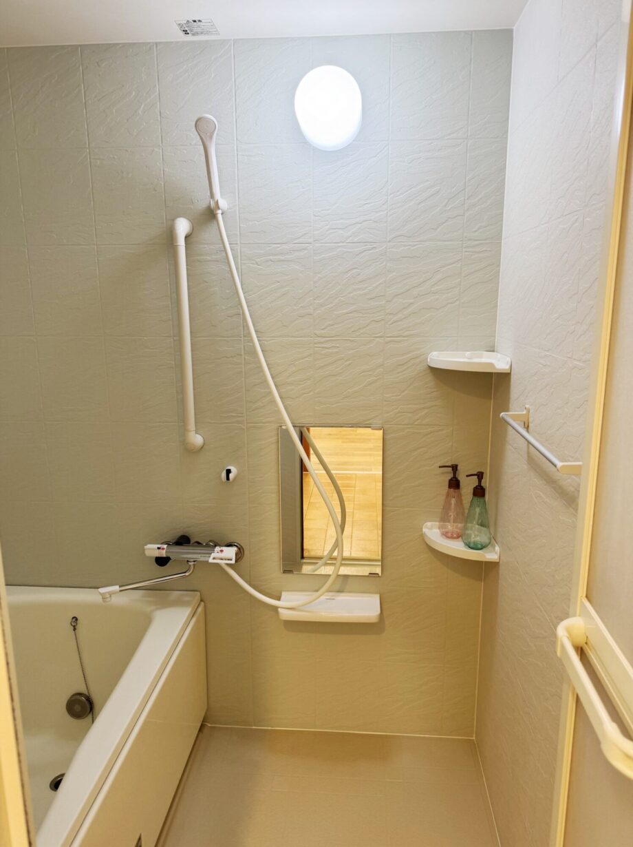 お風呂は足を伸ばしてゆったり浸かれる一坪タイプ。一日の疲れを癒すには最高のご褒美です。