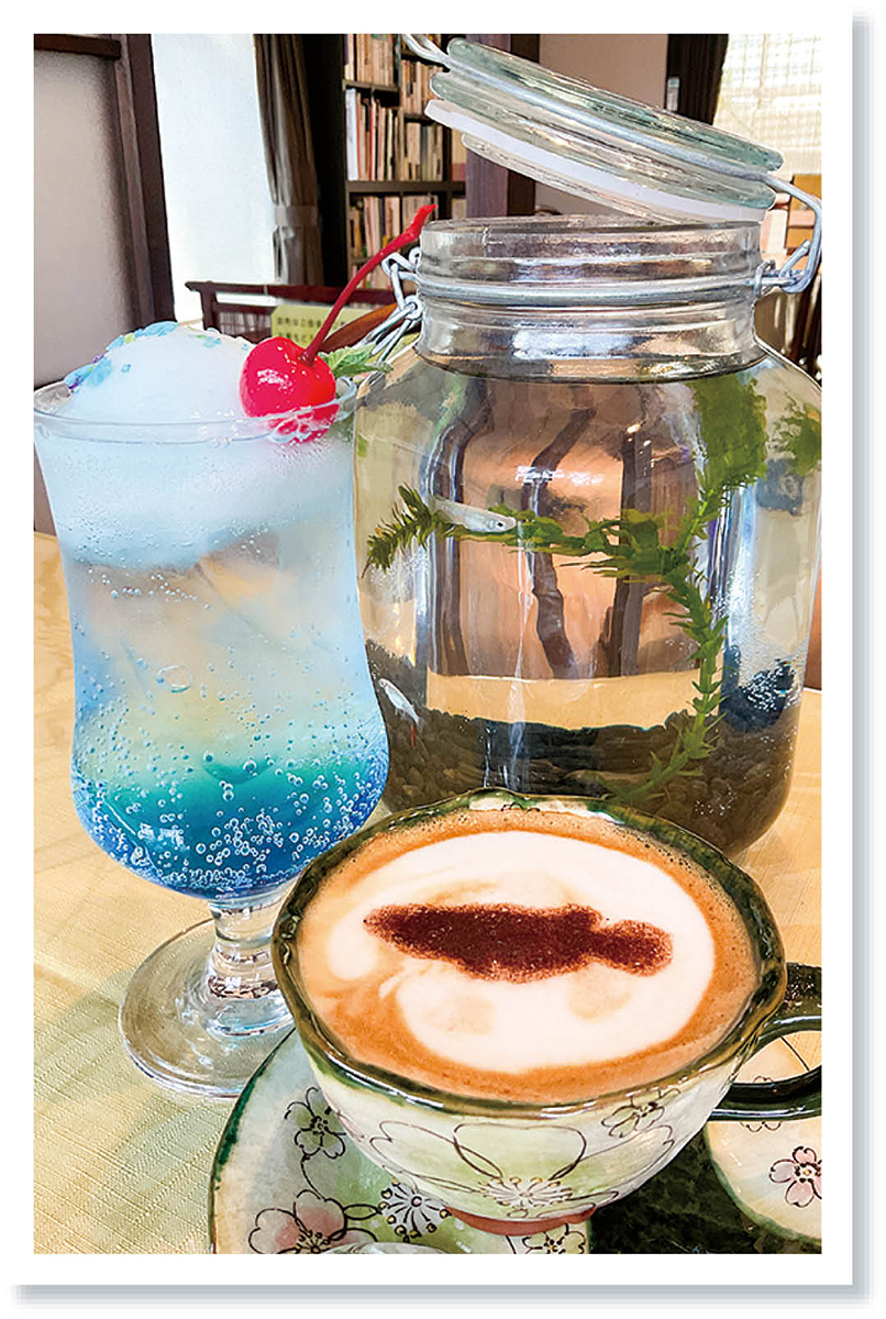 2025年5月にオープンした古民家カフェ。店内ではメダカを見ながらコーヒーやホットサンドが楽しめる。メダカの品種「幹之」「楊貴妃」「オロチ」をイメージした各種クリームソーダも人気。多種多様なメダカの販売も。観覧・見学も可能。約200冊の本・雑誌も自由に読める。原則土曜のみ営業。