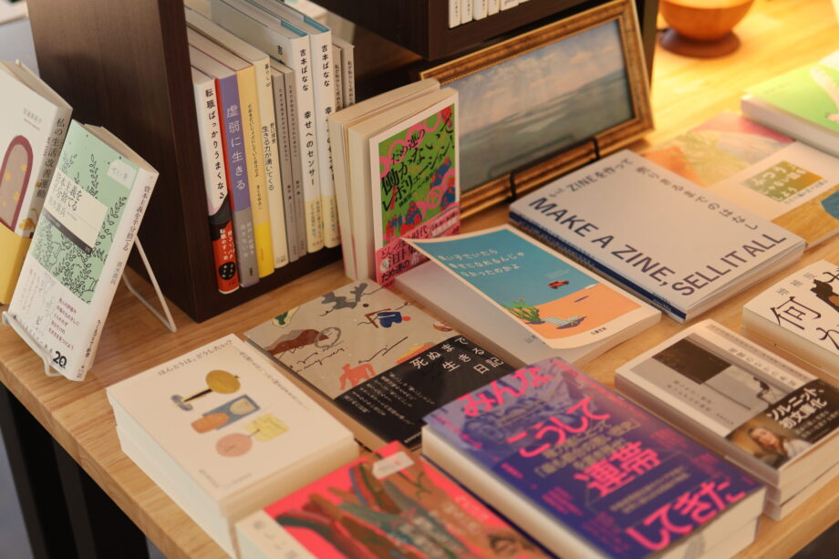 ここは、コーヒーやスイーツを味わいながらゆっくりと本を楽しめる「独立系書店」。店内に整然と並ぶ本は、店主の吉田悠希(ゆき)さんが選書したもの。オープンに合わせ約1,000冊をセレクトしました。「ほっとして、ハッとする本」をテーマに、あえてジャンル分けはせず、内容の共通性を大切にした並びになっているとか。大型書店ではなかなか出会えない、問いや気づきを与えてくれる個性的な本が並びます。棚を眺めているだけで、自然と求めている一冊と目が合う。そんな偶然の出会いも、このお店の楽しみ方の一つです。