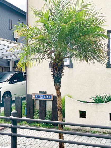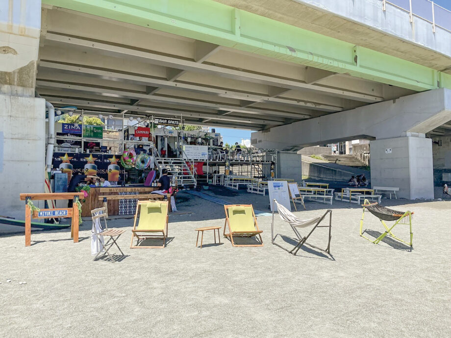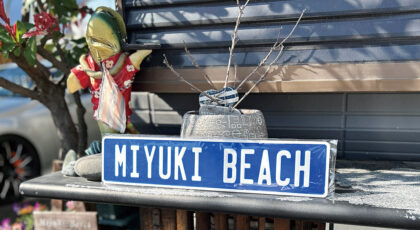 アメリカ西海岸テイストの「MIYUKI BEACH」の看板が見つかれば、御幸の浜はもうすぐ!