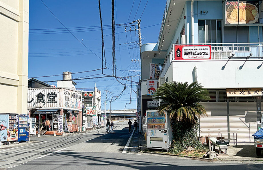 港周辺には、名物アジフライや新鮮地魚の海鮮丼など、漁港グルメが楽しめる飲食店が並んでいます