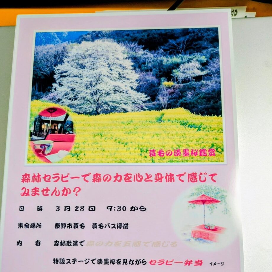 3月28日に淡墨桜を見ながら野点を体験する森林セラピーき計画しています。こちらもなかなかできない体験てす。