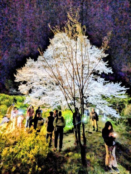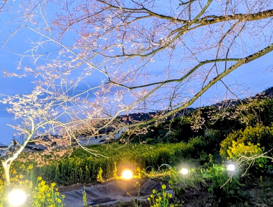 ライトアップの試験しました。ライトアップの一般公開は、3月25日(水)から始めます。時間は、日没から午後7時30分までです。