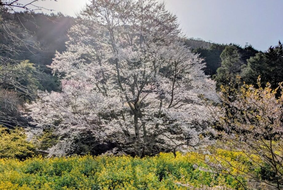 蓑毛の淡墨桜はまだ蕾は固いです。菜の花は開花が進んでいます。