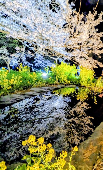 先週末にほぼ満開を迎えました。今週1週間は見ごろです。ライトアップは夜7時30分まで。4月5日(日)まで行う予定です。