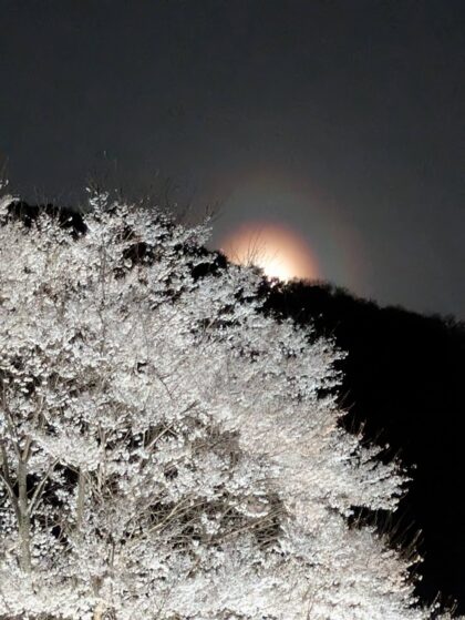 それも、ライトアップ終了の直前に現れカメラをしまって、帰り支度のカメラマンが、慌てて再度カメラを取り出す。当然、ライトアップも延長。奇跡ともいえる写真。