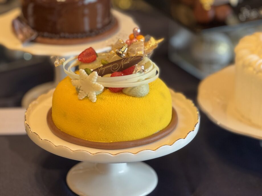 クリスマスには見かけない黄色いケーキは、思わず目を惹きます。持ち帰って箱を開けた時の家族の顔を見るのが楽しみなケーキです。