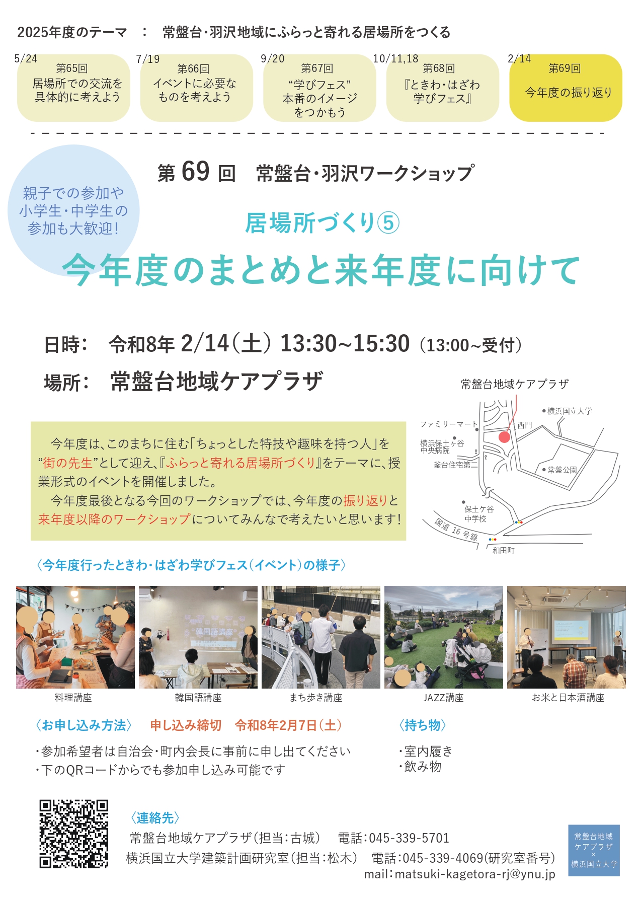 ◆第 69 回 常盤台・羽沢ワークショップ開催のお知らせ