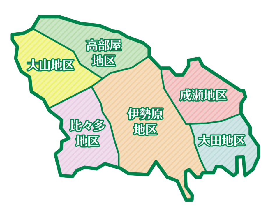 ■大山地区 ■高部屋地区 ■比々多地区 ■伊勢原地区 ■成瀬地区 ■大田地区