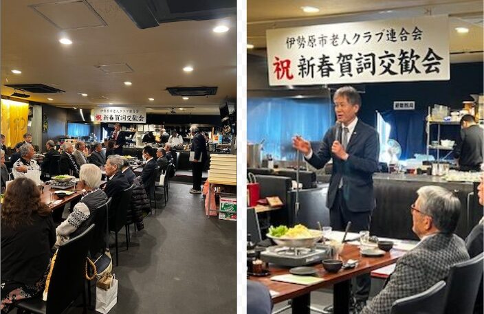 伊勢原市内の天(ten)で1月15日、盛大に開催された伊勢原市老人クラブ連合会の新年賀詞交歓会についてご報告いたします。