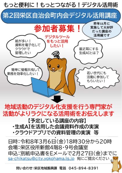 ◆第2回栄区自治会町内会デジタル活用講座【日時:令和8年3月6日(金)18時30分から20時】