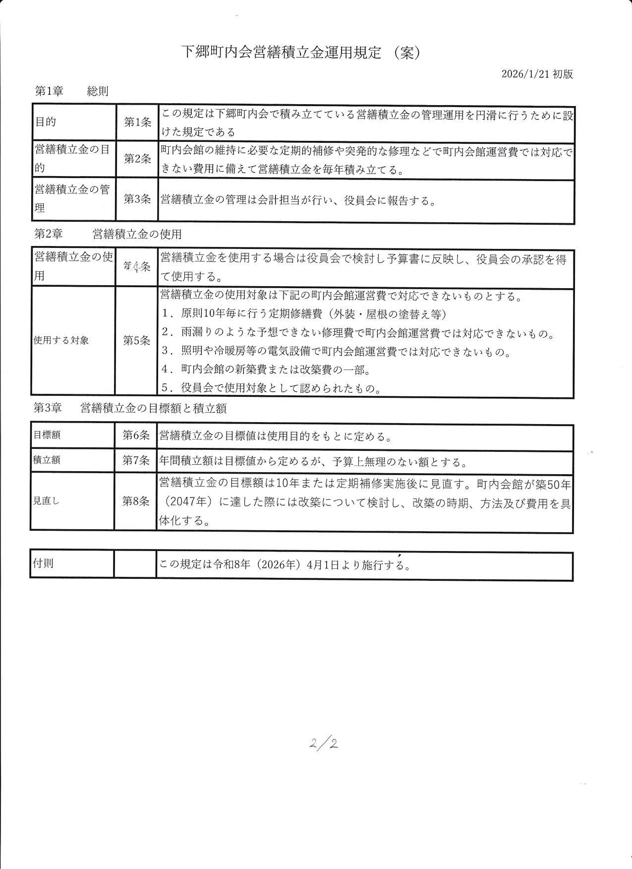 2.会館営繕積立金の規定案 (添付資料 2~4・PDF)