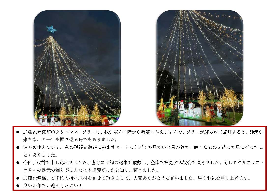 (1) ㈱加藤設備様宅の巨大なクリスマス・ツリーが今年も灯りました (添付資料5)