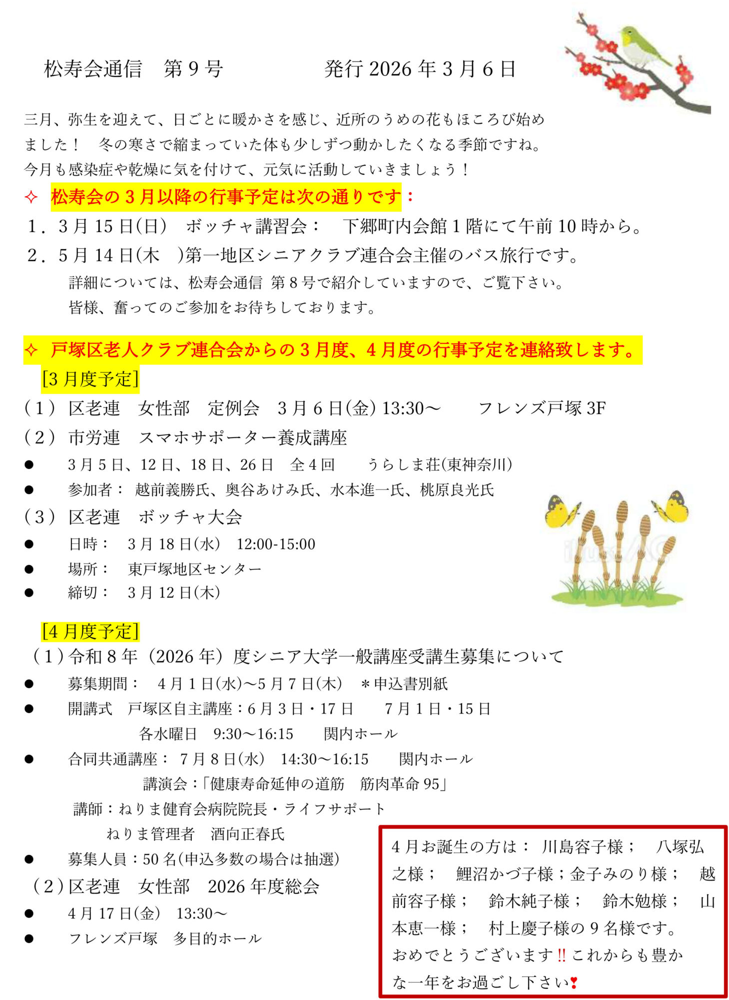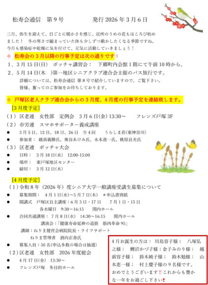 ① 松寿会通信 第9号が3月6日付けで発行されました。