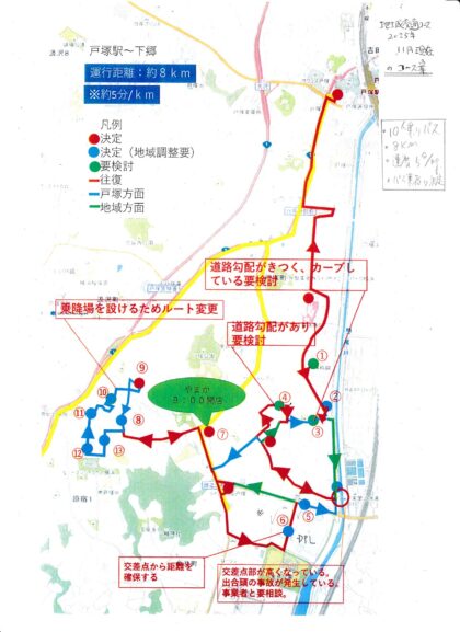 地域交通推進委員会の中間報告が12月度役員会で紹介されました。添付資料2は、戸塚町南側エリアのミニバス運行案(郷和台、下郷の一部)を示します。