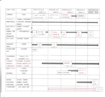 ② 年が明けたらすぐに、今年度の計画と実行結果についての締めと、来年度の計画・予算を立て、4月に開催される総会の準備を行うことになります。添付資料1は、上記の事業計画を含んだスケジュール表です。(クリックして拡大表示できます)