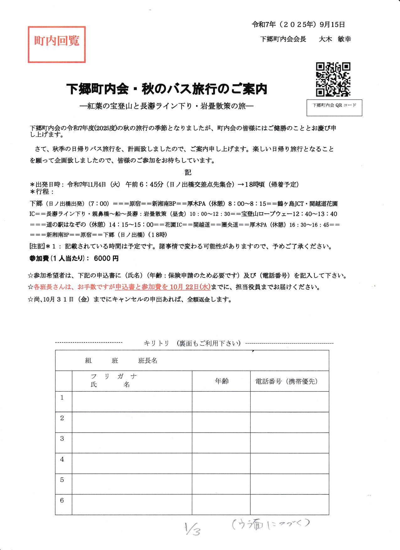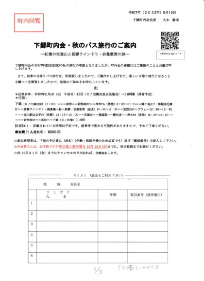 3.秋のバス旅行のご案内(会報) (添付資料2-3)