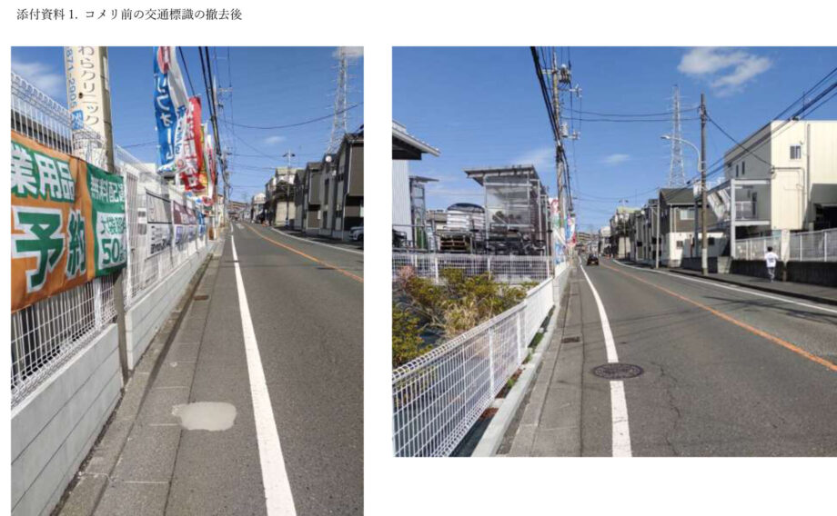 1.コメリ前の交通標識の撤去 (添付資料1-2)